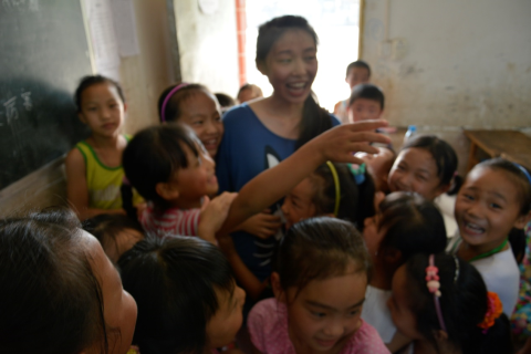 活动结束后,同学们依然依依不舍的拉住我们的队员,要求他们继续表演节目,我们的队员也毫不吝啬的继续为同学们表演着。从和同学们的接触中,我们发现,当地的小孩接受的课外教育很有限,音乐课美术课也几乎是名存实亡,所以,我们决定要在剩下的日子里,多为当地的小朋友进行课外活动课。