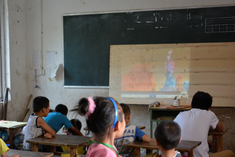 今天,我们为小朋友在教室里放映了电影。可爱的人物造型,风趣幽默的故事,很快吸引了小朋友的兴趣,都兴致勃勃的看着电影。后来我们了解到,这些小朋友很少接触到这种西方动画,学校也不会开展类似的活动,所以,大家都很珍惜这次机会。