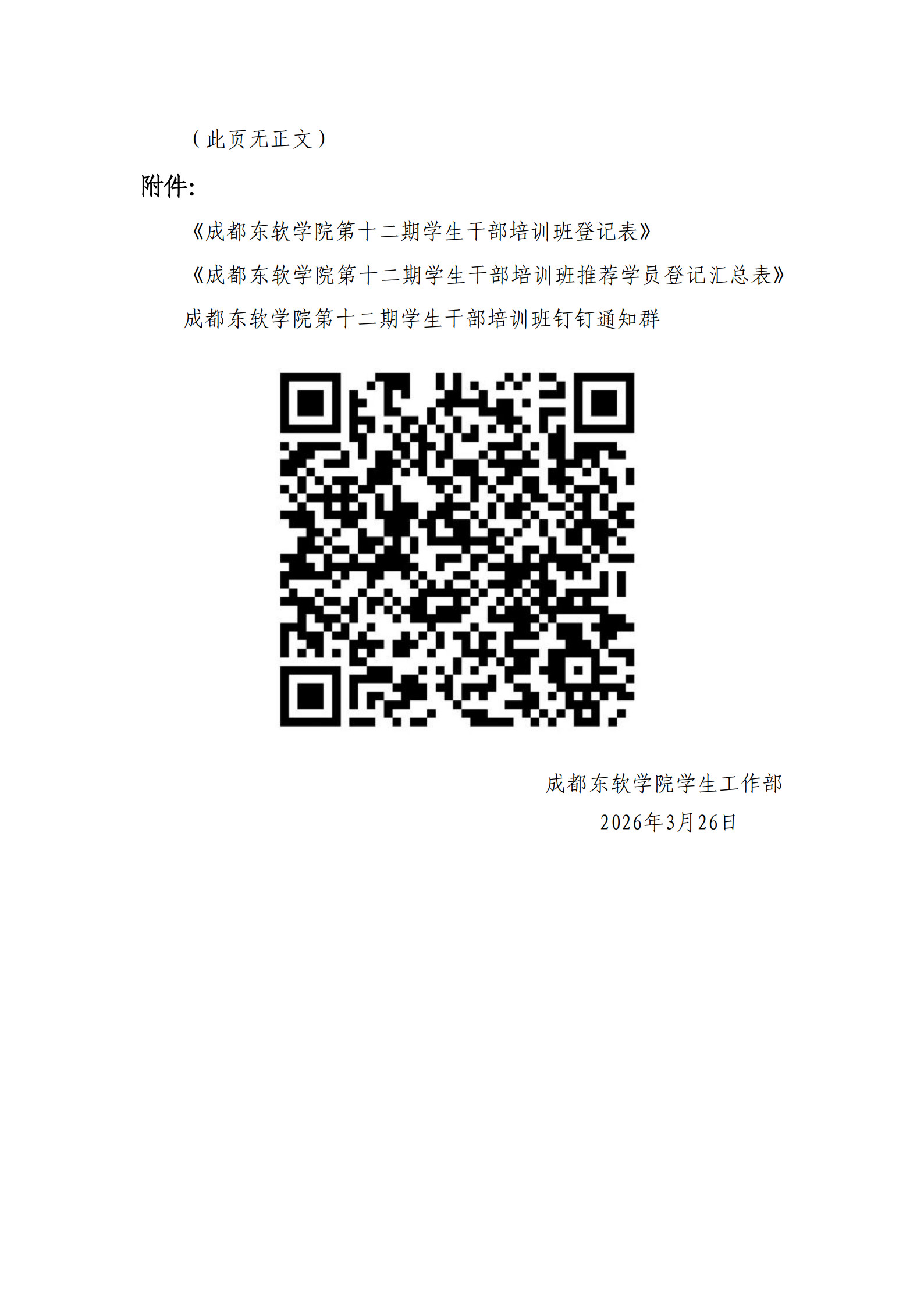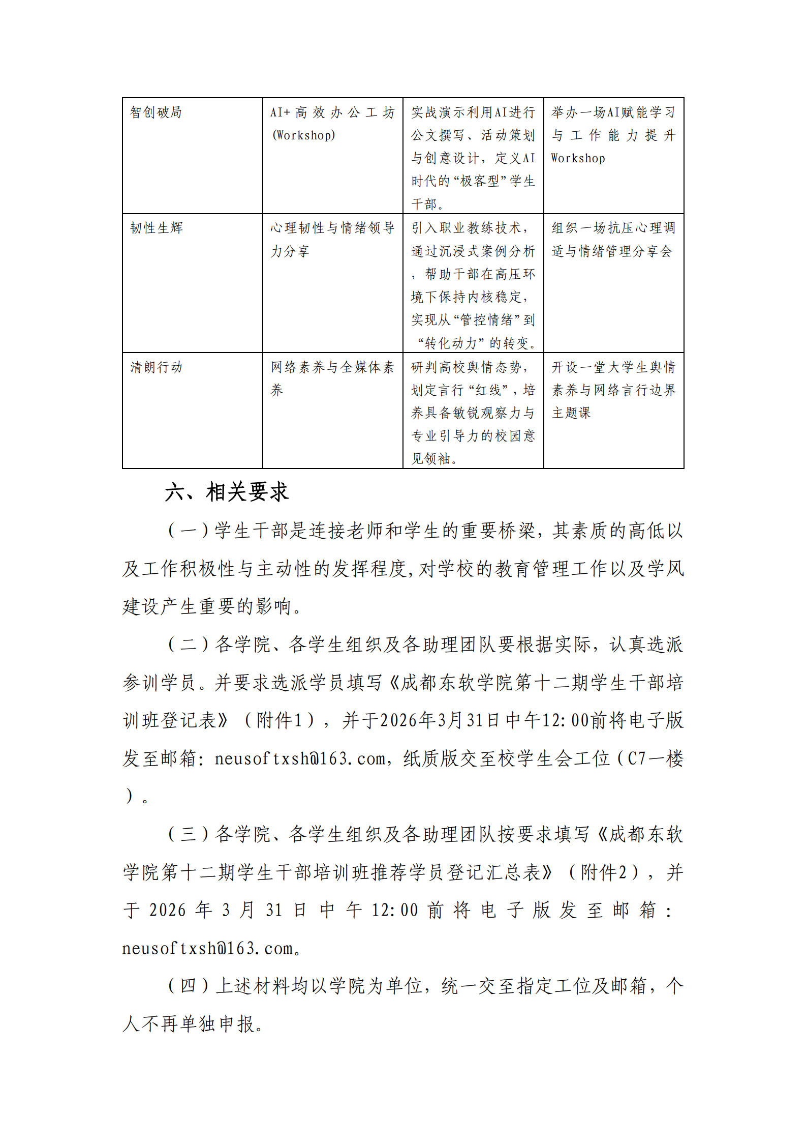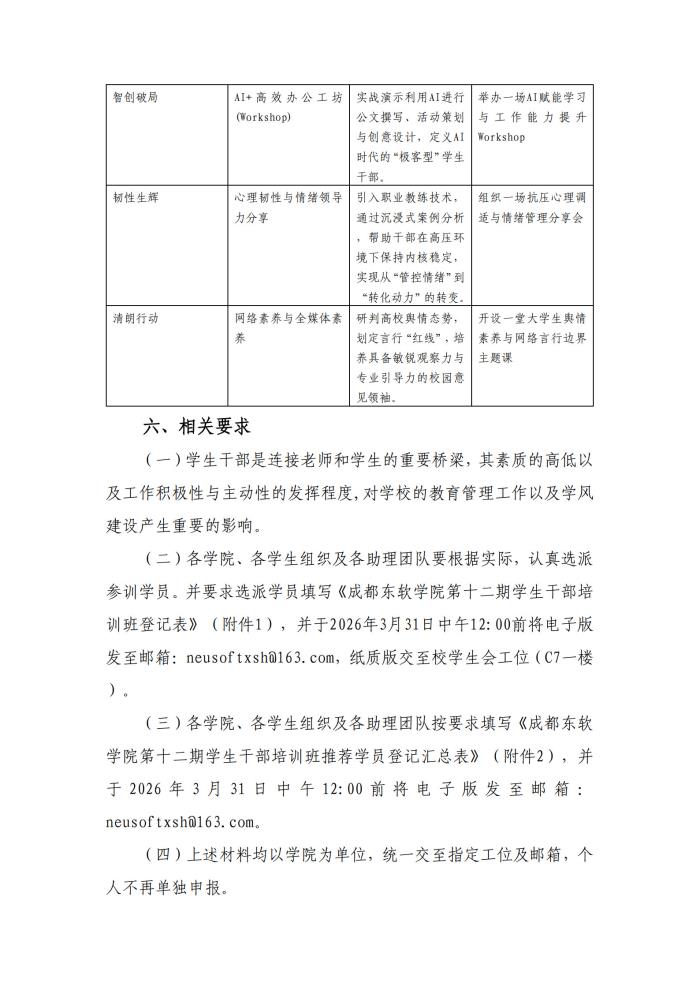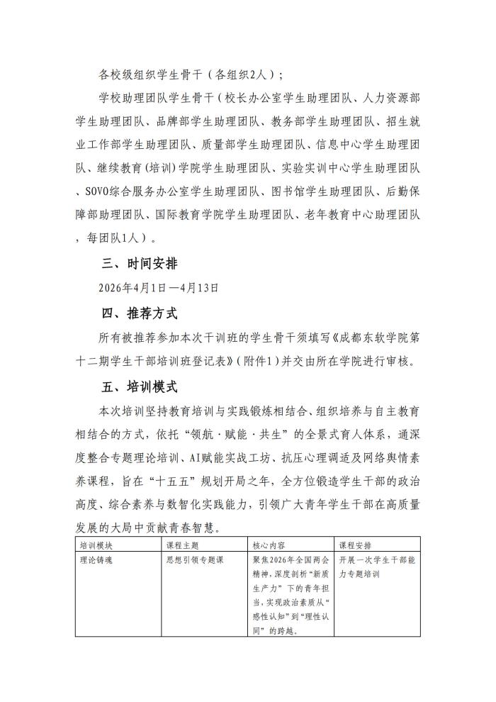 附件1:4-校学部发〔2026〕4号 关于开展成都东软学院第十二期学生干部培训班的通知