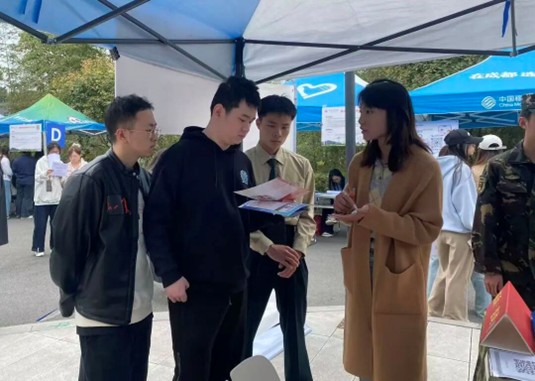 双选会现场,成都东软学院武装部付延西老师对大学生应征入伍核心问题进行详细讲解,从报名流程、体检标准、政治考核等实操环节逐一拆解说明,细致解读了鼓励大学生参军入伍政策、返乡返校应征大学生经济补助政策等优待政策,耐心回应同学们的各类提问,结合自身经历与职业视角,分析了参军入伍对个人成长与职业发展的深远意义。