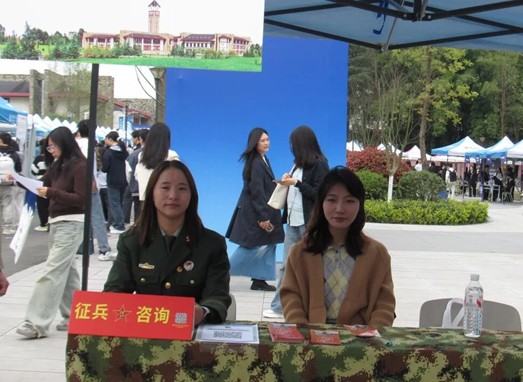 3 月 27 日,学校举办 2026 届春季大型双选会。本次招聘会上,成都东软学院武装部设立了大学生应征入伍宣传展位,重点面向全体应届毕业生,从入伍报名条件、优抚优待政策到部队职业发展路径、退役复学升学安排及军营生活风貌等多方面进行细致讲解,并为同学们提供一对一的政策答疑服务。